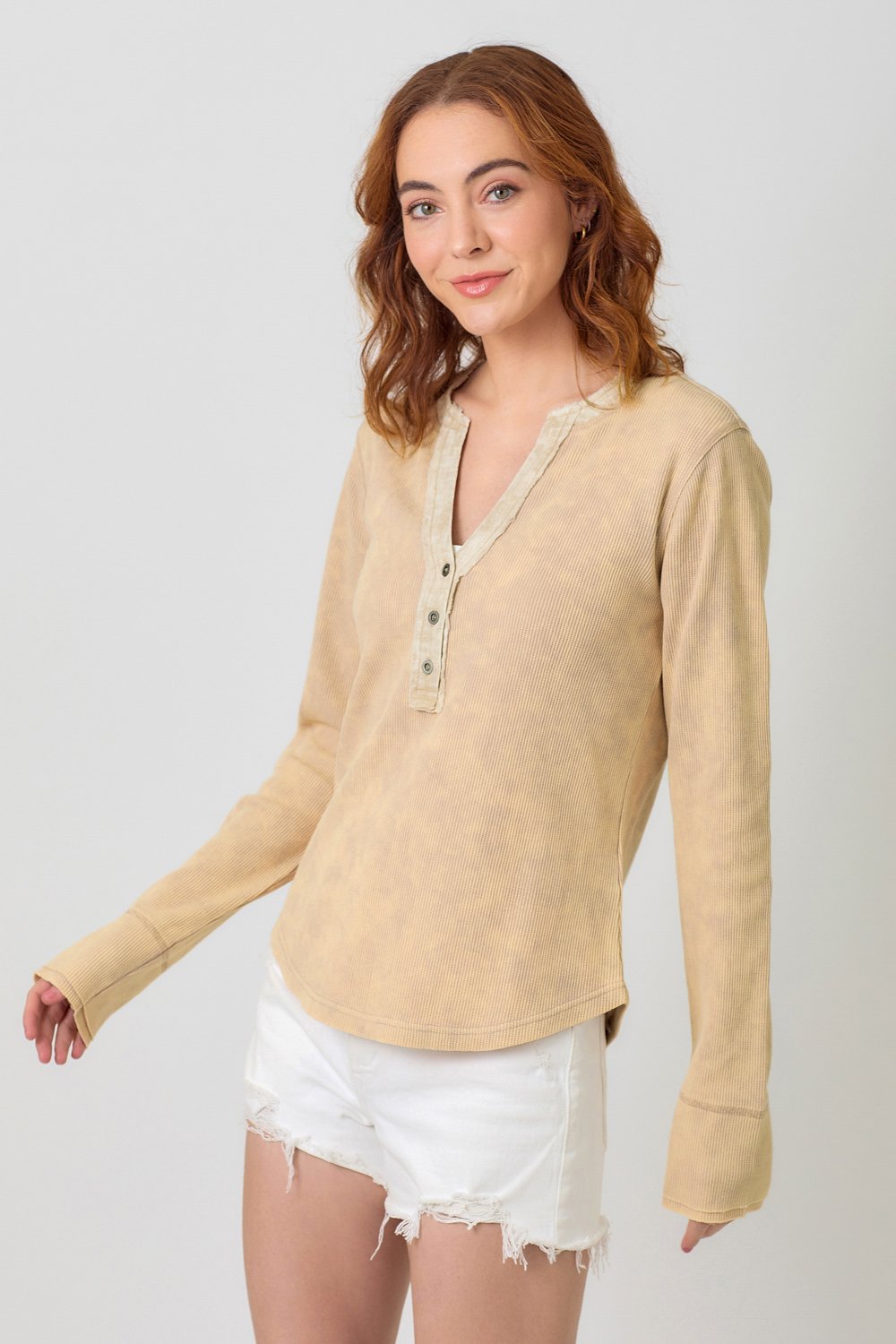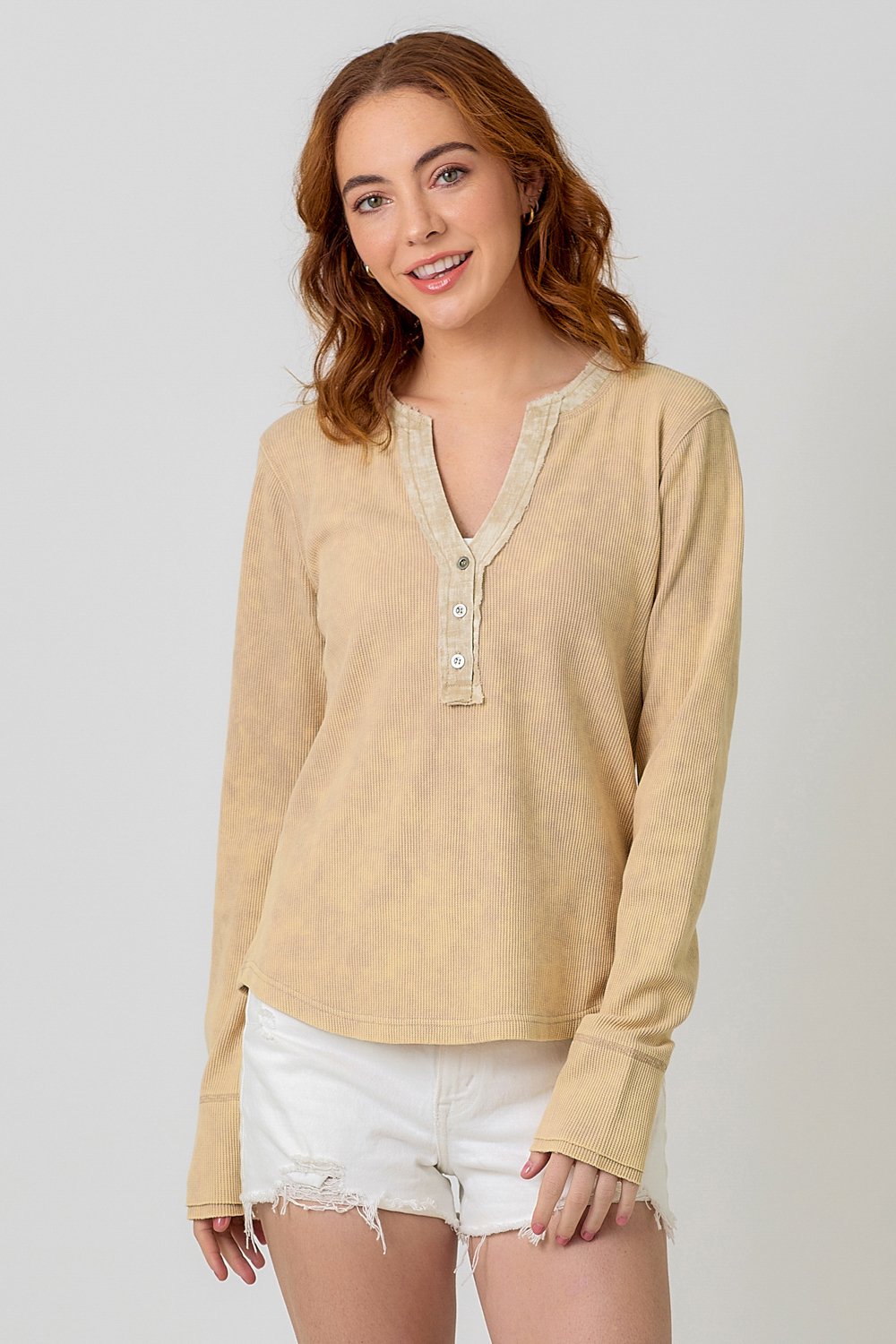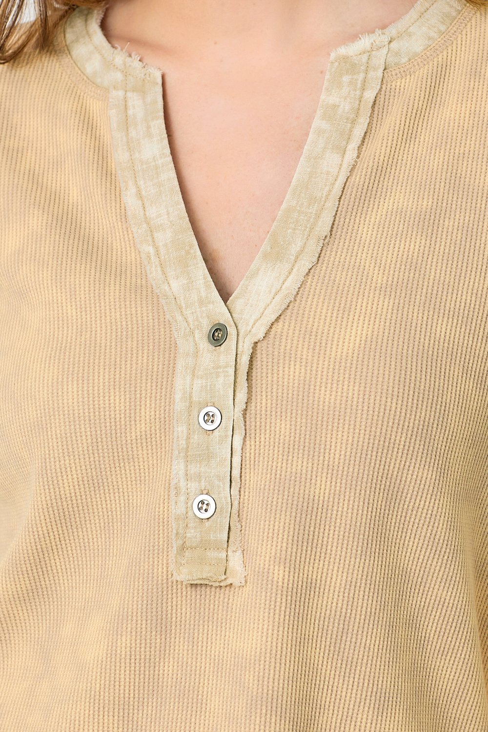 Mystree – Sand Washed Waffle Thermal Henley Top