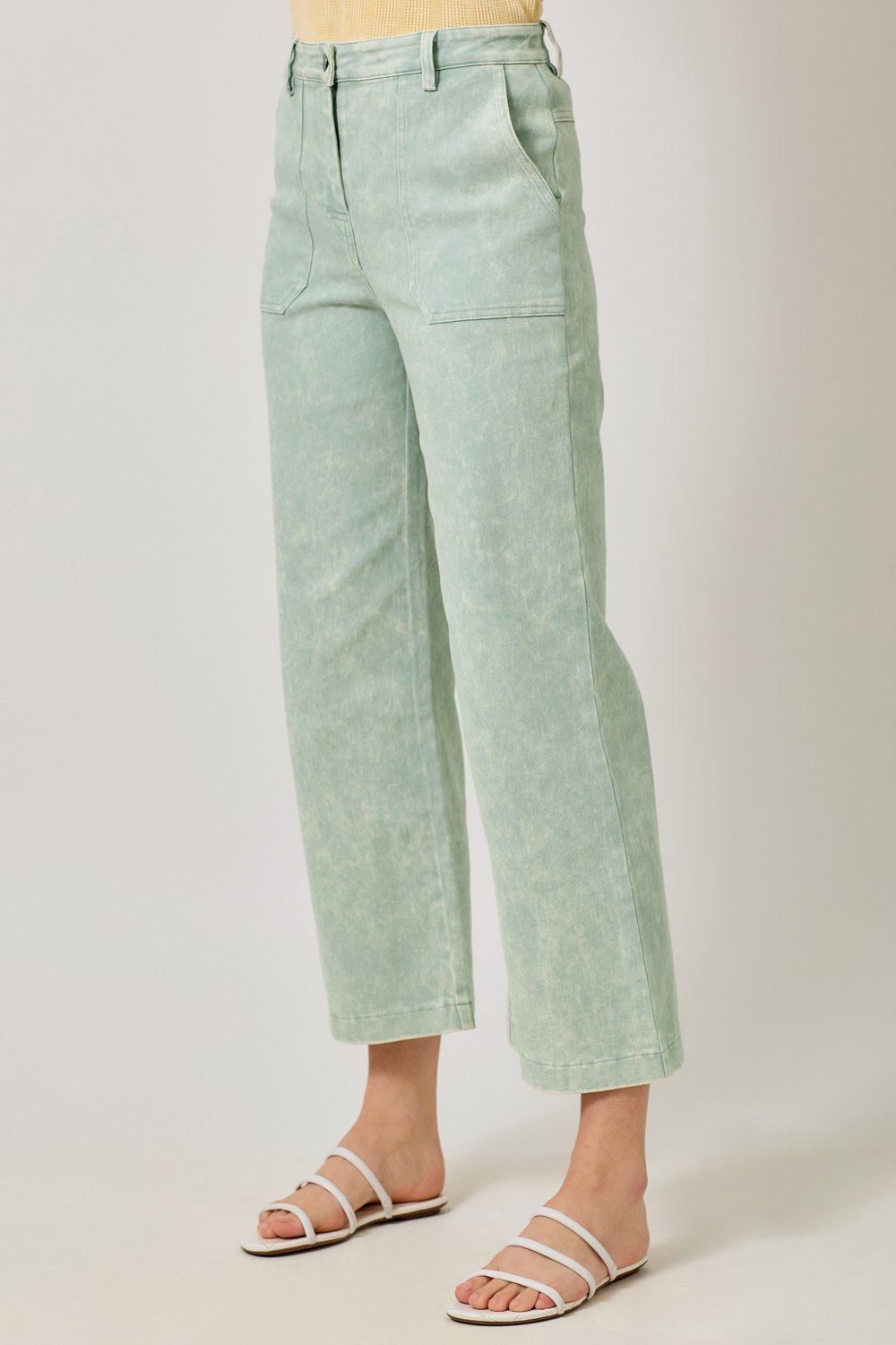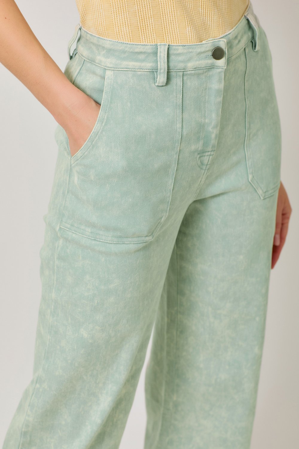 Mystree – Washed Ice Blue Wide Leg Trousers with Side Pockets